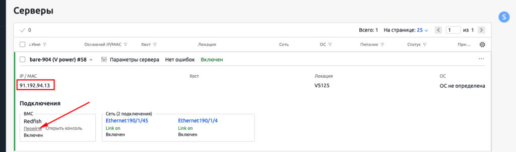 Нажмите «Перейти» в блоке BMC.